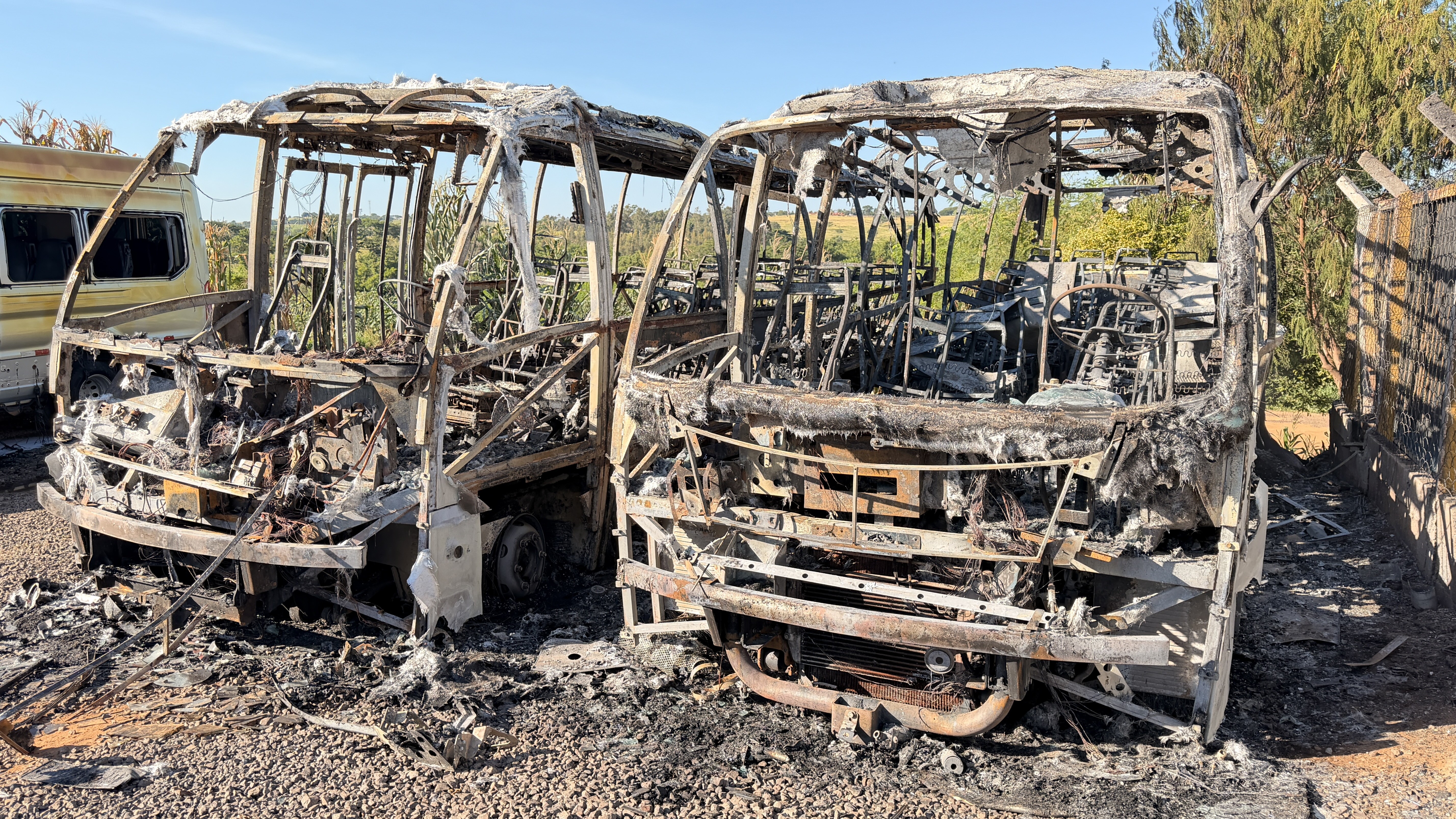 Incêndio atinge garagem de empresa de transporte e destrói dois ônibus em Adamantina Um incêndio atingiu o pátio de uma empresa de transporte coletivo no bairro Parque Industrial, em Adamantina (SP), na madrugada desta quarta-feira (5). 📲 Participe do canal do g1 Presidente Prudente e Região no WhatsApp Ao todo, quatro veículos foram atingidos pelas chamas, e dois ônibus tiveram perda total. Em outro caso, em Presidente Prudente (SP), a polícia investiga o caso de um carro encontrado incendiado em uma área rural. Incêndio atinge pátio de empresa de ônibus e destrói veículos em Adamantina Portal Siga Mais/Imagem Cedida O Corpo de Bombeiros foi acionado por volta das 3h30 para combater o fogo na garagem do Grupo Massei. Segundo a corporação, além dos dois ônibus destruídos, uma van e outro ônibus também tiveram queima parcial. A operação contou com apoio de um caminhão-pipa da prefeitura e da Defesa Civil. Não houve feridos. Incêndio atinge pátio de empresa de ônibus e destrói veículos em Adamantina Em nota, o Grupo Massei informou que o fogo começou em um dos veículos que passava por manutenção no sistema de ar-condicionado, possivelmente devido a um problema no sistema elétrico, e as chamas se alastraram para outros veículos estacionados nas proximidades. Ao g1, o gerente da empresa em Adamantina, Rudinei Rezende, afirmou que a empresa teve uma perda significativa. "Tivemos um grande prejuízo, porque a gente trabalha no transporte urbano de Adamantina e em algumas empresas privadas", explicou o gerente. A empresa também afirmou que já iniciou a apuração das causas do incêndio e está colaborando com a perícia para o completo esclarecimento do caso. Incêndio atinge pátio de empresa de ônibus e destrói veículos em Adamantina Grupo Massei/Imagens Cedidas Incêndio atinge pátio de empresa de ônibus e destrói veículos em Adamantina Portal Siga Mais/Imagem Cedida Initial plugin text Carro incendiado em Presidente Prudente Em Presidente Prudente (SP), a Polícia Civil investiga o caso de um carro encontrado incendiado em uma área rural nas proximidades do Bairro Aeroporto, em uma estrada paralela à Rodovia Assis Chateaubriand (SP-425), na noite desta quarta-feira (4). Segundo a Polícia Militar, o veículo já estava totalmente destruído pelas chamas quando foi localizado. O fogo também atingiu a vegetação rasteira ao redor da carcaça. Polícia Civil investiga o encontro de um carro incendiado em uma área rural em Presidente Prudente Polícia Civil/Divulgação No local, os policiais constataram que a placa dianteira estava ausente e a traseira, partida ao meio. Pelo número do chassi, a polícia identificou que o veículo pertence a um morador de Rancharia (SP). No entanto, ao verificar o endereço registrado, os policiais militares daquela cidade informaram que o imóvel está abandonado e o proprietário não foi localizado. Apesar de não haver registro de furto ou roubo, o sistema de monitoramento "Muralha Paulista" indicou que o carro circulava regularmente por Presidente Prudente nos últimos oito meses. A perícia foi acionada, e o caso foi registrado como incêndio, com investigação das circunstâncias do abandono e do fogo. Polícia Civil investiga o encontro de um carro incendiado em uma área rural em Presidente Prudente Polícia Civil/Divulgação Veja mais notícias no g1 Presidente Prudente e Região VÍDEOS: assista às reportagens da TV TEM